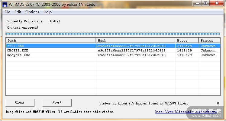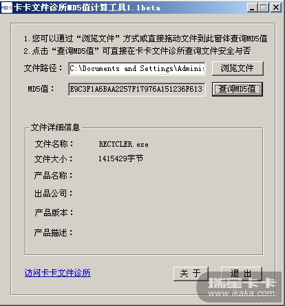 根据各位的要求,我提取了几个样本。使用WinMD5检测其MD5值,发现MD5相同,看来病毒没有变形能力。