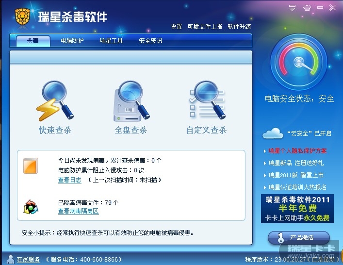 不知怎么的,瑞星升级为2011后,它就再也不能动了