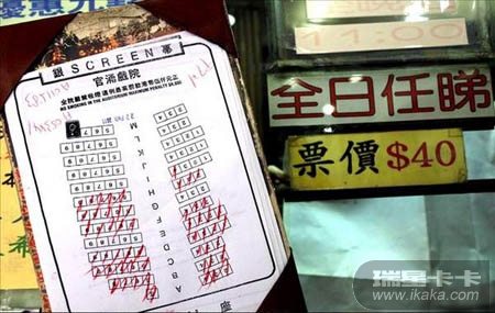 “一张票,睇到笑”,“老友鬼鬼,全日任睇”,40港元一张门票,如果观众有足够兴趣,可一路从中午看到晚上,影院老板为此设计的宣传口号,最近已经成为本地网络的热门流行语。图为2月22日下午,在香港佐敦的官涌戏院,戏院贴出广告,号称可以用40港币看一天。