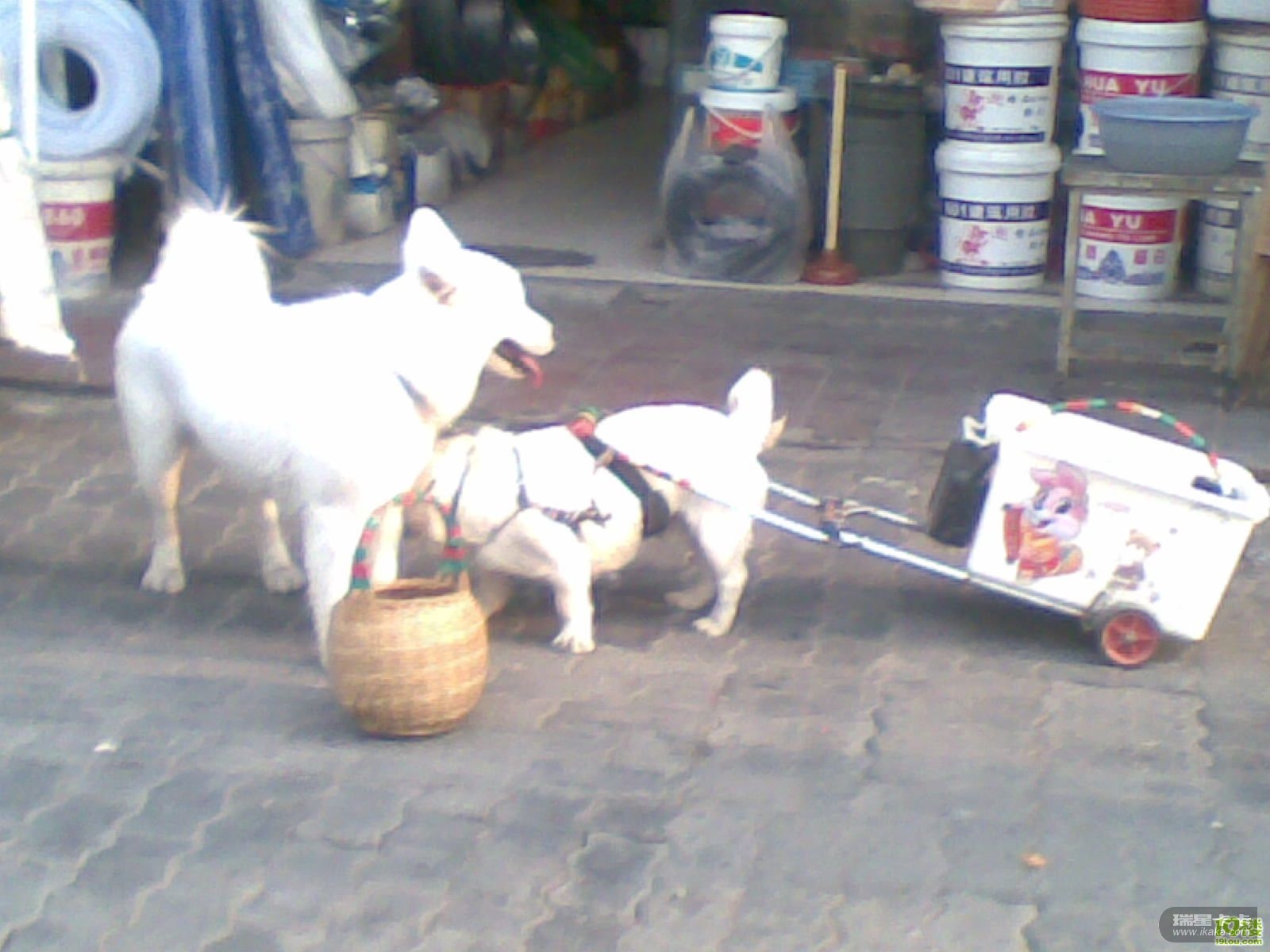 杭州湖墅南路2小狗买菜拉车