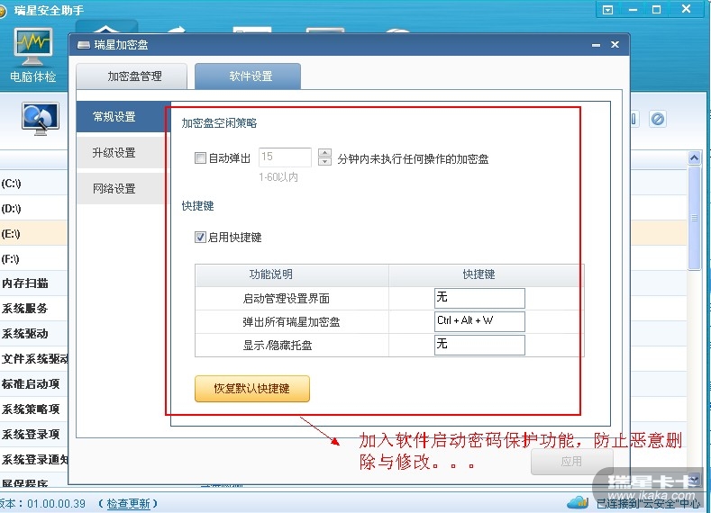 瑞星加密盘加入软件保护功能,可以加入密码保护功能,防止恶意删除与修改。。。。