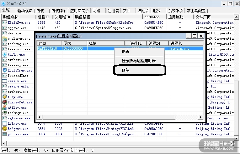 测试的 是 加载驱动后 对瑞星的影响 ,不是测试的ring3!