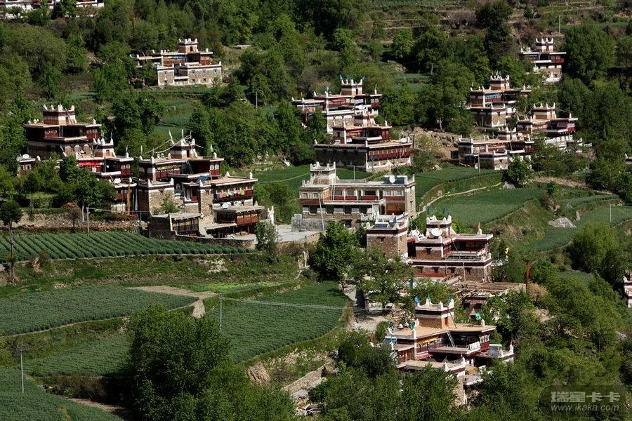 甲居藏寨位于四川甘孜州丹巴县境内,距县城约8公里,犹如田园牧歌般的童话世界,享有“藏区童话世界”的美称。甲居,藏语的本意是指“百户人家”。藏寨面积约5平方公里,居住嘉绒藏族140余户,藏寨从大金河谷层层叠叠向上攀援,一直伸延到卡帕玛群峰脚下。放眼望去,卡帕玛群峰,象一位慈母敞开宽大温柔胸襟,凭任山寨安然躺在怀中。
