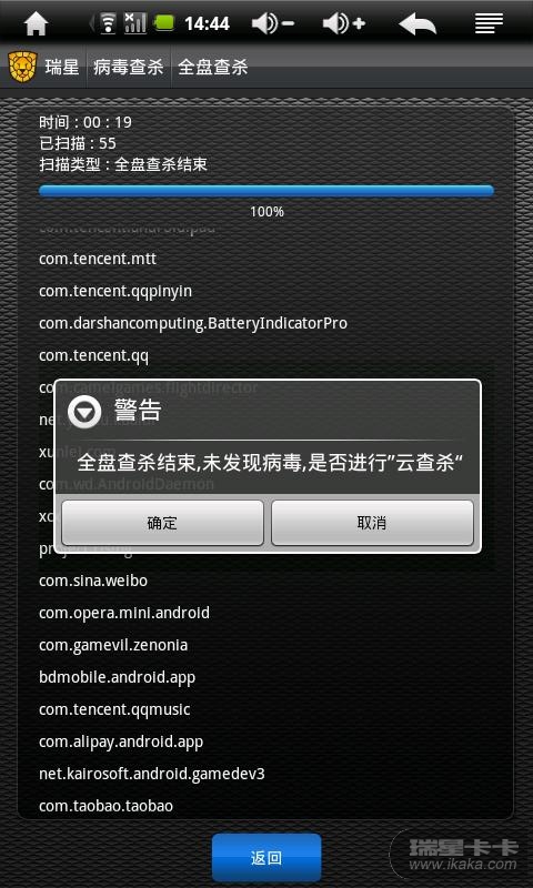 全盘查杀界面,还算不错,但是我觉得扫描完后是不是“警告”这一词运用的不太恰当?