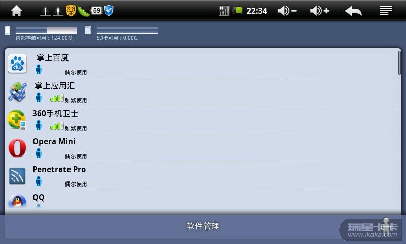 金山在手机优化方面并没有做,但是有任务管理器和软件管理,也都还不错!