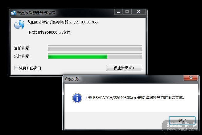瑞星卡卡安全论坛个人产品讨论区瑞星杀毒软件瑞星杀毒软件2011 高手请进!! 谢谢了!下载 RSVPATCH/22640303.rp 失败