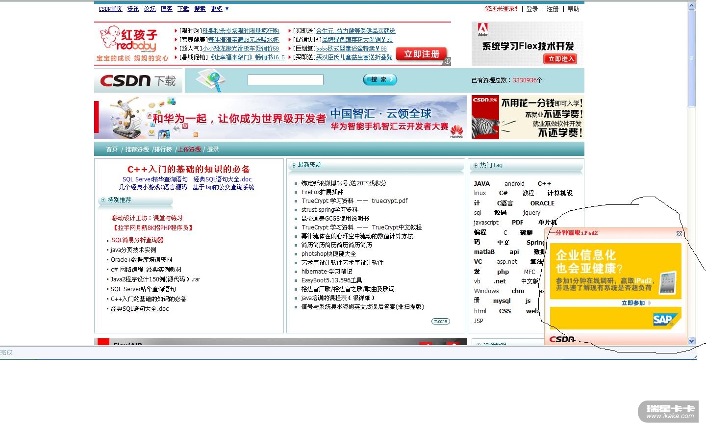 download.csdn.net的广告链接打不开。见附件图标示。黑色标记。