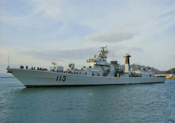 “黄山”号导弹护卫舰发射红旗16号舰空导弹