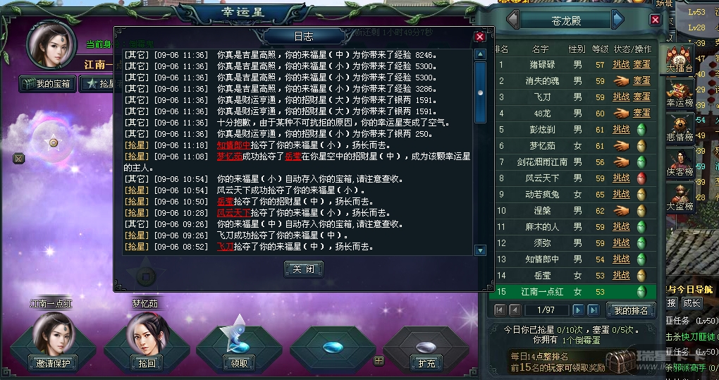 还在抢~~管理员你们都跑到哪里去了????出现问题就不管了吗???排名第6的梦忆如和排名13的知情郎中。还能抢排名15的江南一点红????