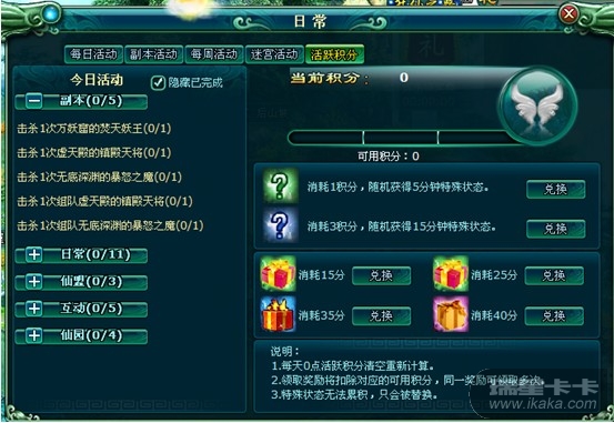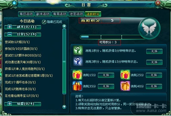 点击【兑换】——【开始】——【停止】,当转动的光圈停下来,你就会获得光圈最后所停位置的特殊状态了。这个特殊状态彼此之间无法叠加,只能覆盖,但是可以与其他丹药等带来的状态共存。