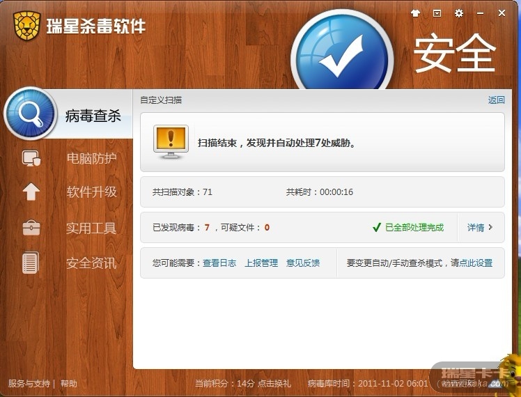 回复: 20111102瑞星最新版本24.00.1.59测试