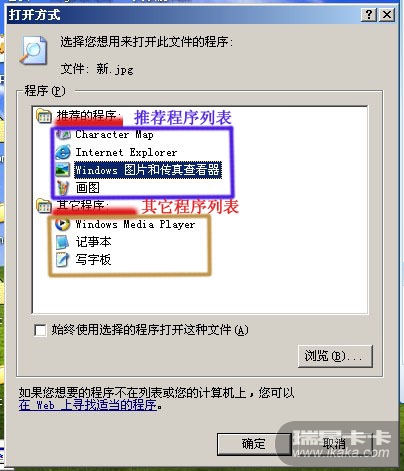 以上是打开方式菜单的推荐程序列表的添加方法:现在讲在其它程序列表中添加程序的方法: