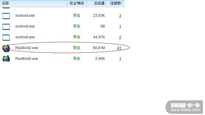 防火墙的RavMonD.exe 下我看了下连接数