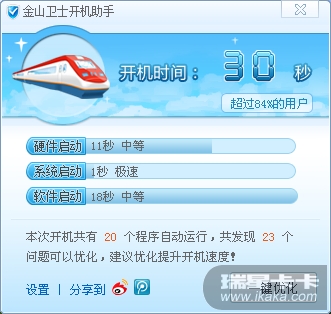 从下图可更清晰地看出,瑞星的开机项占用了不少开机时间:
