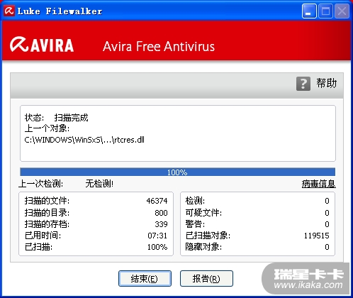 Eset NOD32 AntiVirus 2012剩余文件数: