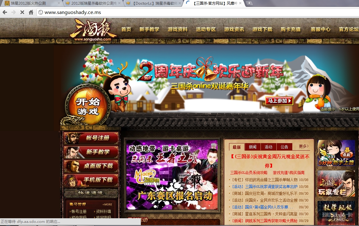 操作系统:32bit-Window7旗舰版主存:2GCPU:i3 M330浏览器:Chrome瑞星软件版本:24.00.02.15