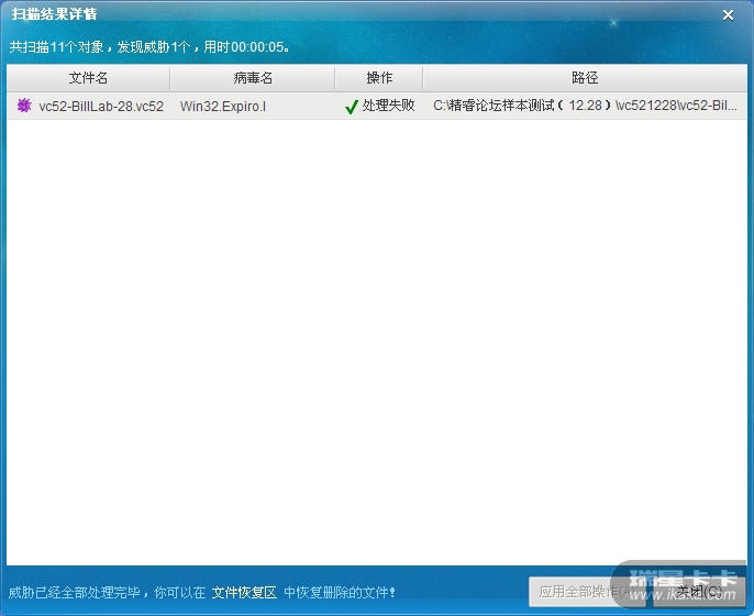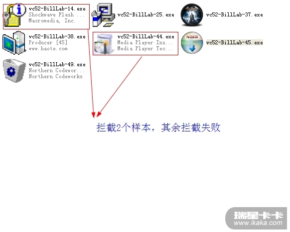 瑞星版本02.20(设置中已去勾扫描一年内病毒),瑞星干掉了45个,查杀率:45/50=90%非常好的成绩