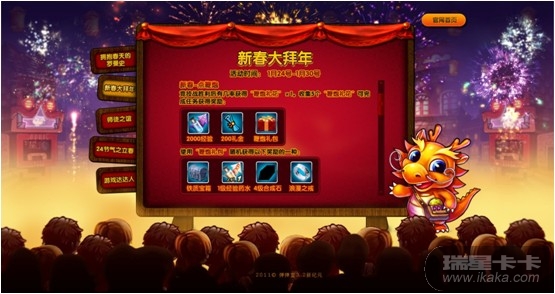 玉兔辞旧岁,金龙闹新春。2012年的1月,元旦、春节两大节日接踵而来。为此,《弹弹堂》安排了大量精彩的活动,让弹友们喜气洋洋迎新春,欢欢喜喜过大年。