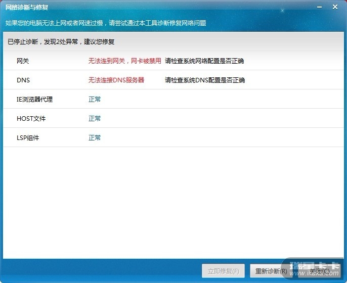 有线网卡禁掉了,这里就诊断不成功,实质上我用无线网卡是可以上网的