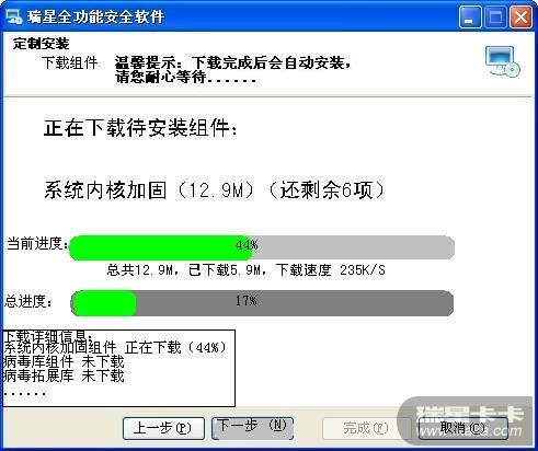 对呀,可瑞星虽然采用模块化安装,但已开始已经一股烟下载完了,体积很大······