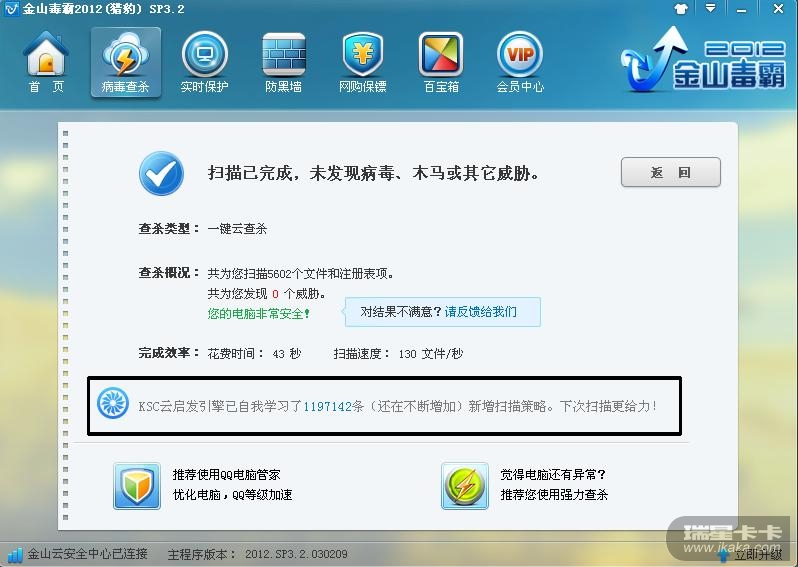KSC只针对活体病毒进行查杀,毫不理会僵尸病毒。KSC是金山新一代系统级灭活引擎