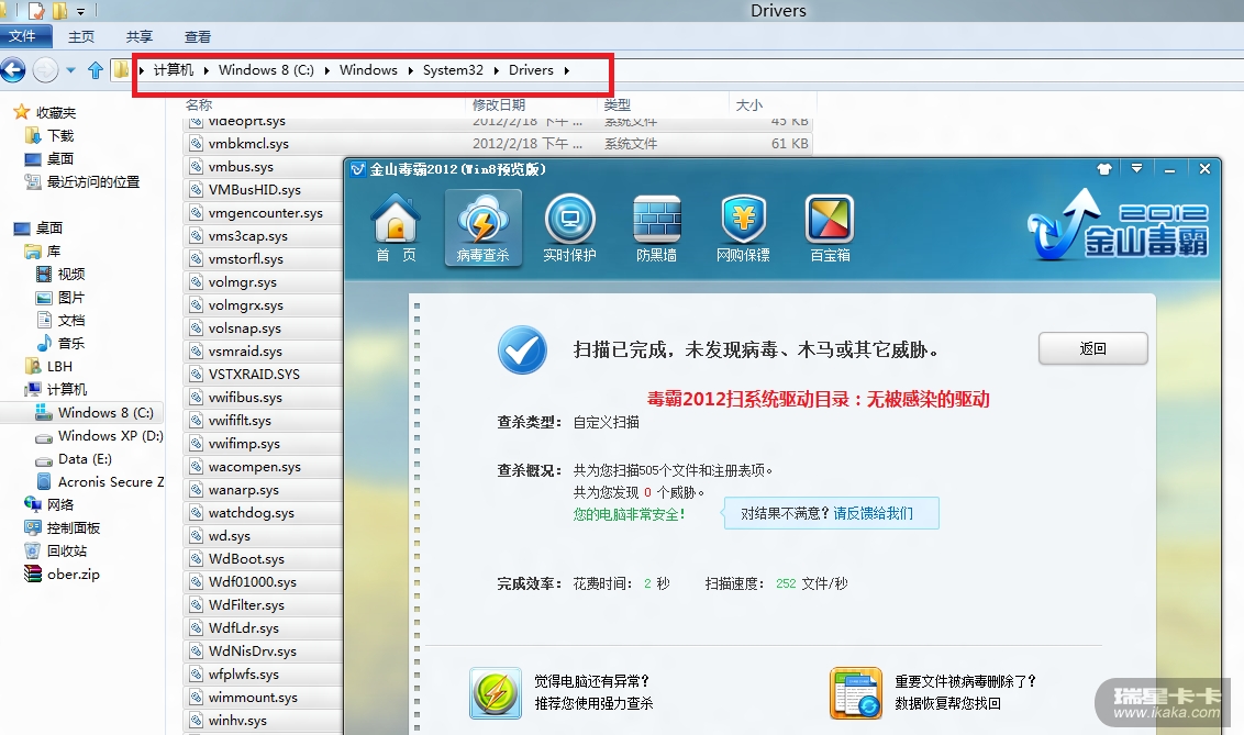 3、重启后,用毒霸2012扫一下病毒目录。结果可以预料:(图3)