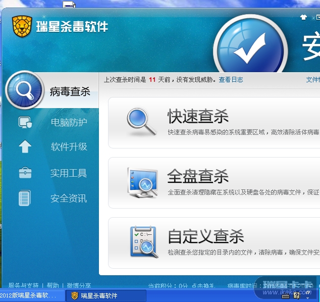 如图,打开瑞星的主界面,明显默认打开时,窗口应该往上抬一些