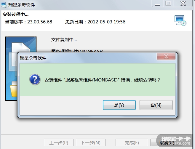 win7装23.00.56.68版本时,提示:安装组件“服务框架(MONBASE)”错误