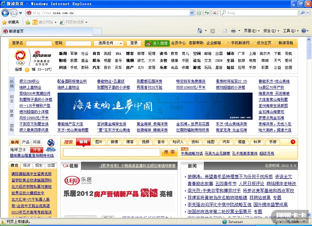 然后驱IE上新浪、百度、优酷,IE罢工;