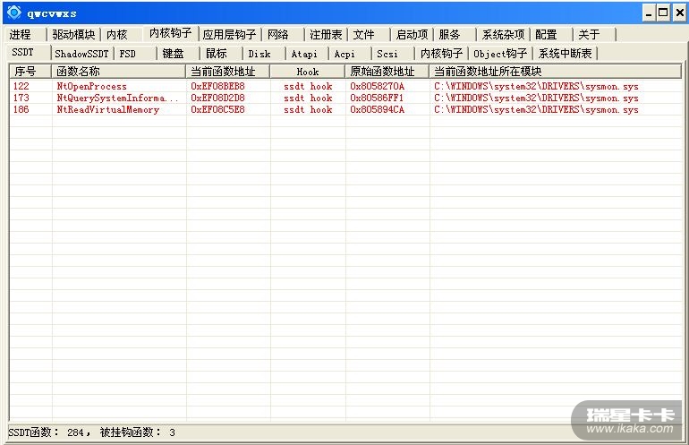 扫描发现瑞星ssdt的挂钩 大部分被恢复了 !!!