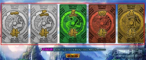 8、玩家每天每轮次卜卦,第一次系统发放得5张卦组成的卦象(玩家没有换卦),等级与卦象两者同时满足的条件下,即可获得额外奖励;