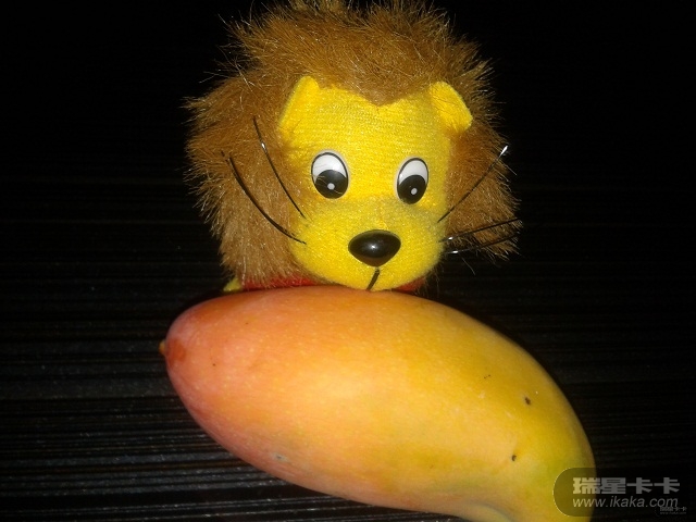 fifth,水果,尤其是热带果王——芒果!酸酸甜甜,香甜可口的芒果,我每个夏天都会吃很多呢。来张芒果和狮子的合影吧! 图片就命名为:狮子的梦想——嘴边有个大芒果!