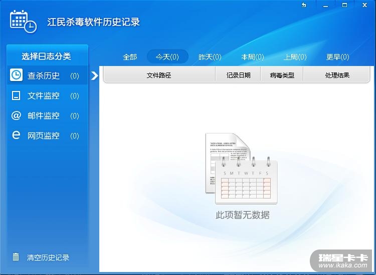 江民的历史记录显得 很简洁 直观 大气 ,相反瑞星的就有点杂乱了