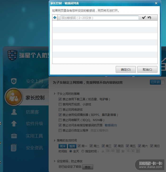 我用的是最新版的个人防火墙,我是想在我电脑上对某些关键字进行屏蔽已防止孩子浏览一些非法网站和游戏网站,比如腾讯的所有游戏,但是进入防火墙家长控制设置里,开启关键字过滤,添加关键字时无论怎么搞都添加不起关键字,希望官方给个解决方法.