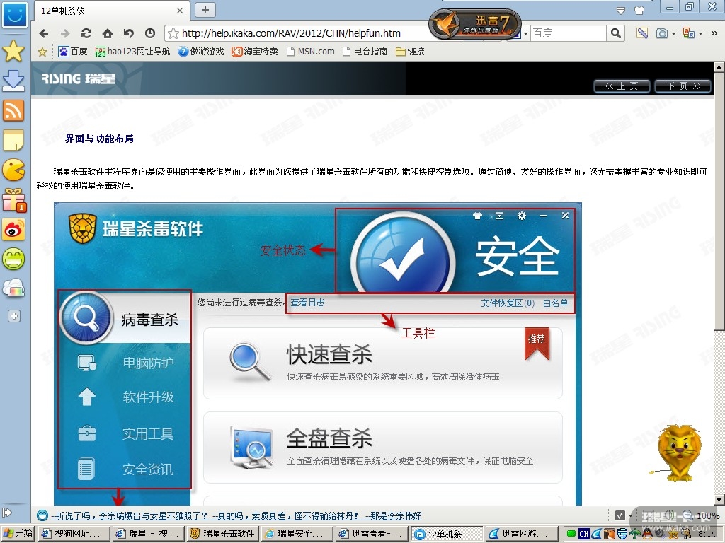 在试用瑞星的时候,发现了一处更新不及时的地方.(如图所示)