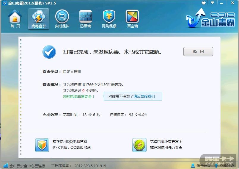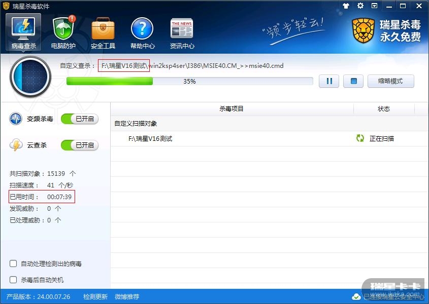 汗... 我说的是变频查杀时间的问题。至于第一次查杀报9个,因为有3个处理失败了。再查杀就没报了。再后来为什么目录名更改后又报了9个,而再查杀又只报6个就要问研发了。 呵呵