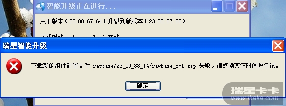 下载保存后,修复安装,安装完成后的杀毒软件的版本还是23.00.65.95,不管是点击右下角的软件升级,还是使用代理服务器升级都弹出这样的对话框(如图),也不知哪里出了问题?
