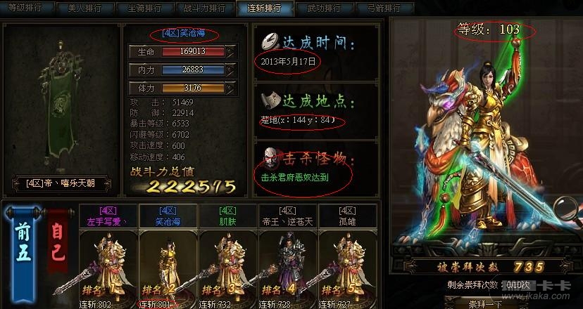 妈B的 不带这么坑的啊 什么显示时间有问题 好第1张图我承认你是显示时间有问题 那第2张图还是时间问题吗 102级到103级就2天 打怪还是打79级的连斩从785到801 还是时间显示问题吗 你是想告诉我这是他很旧之前打了 只是到5月17才显示出来吗?