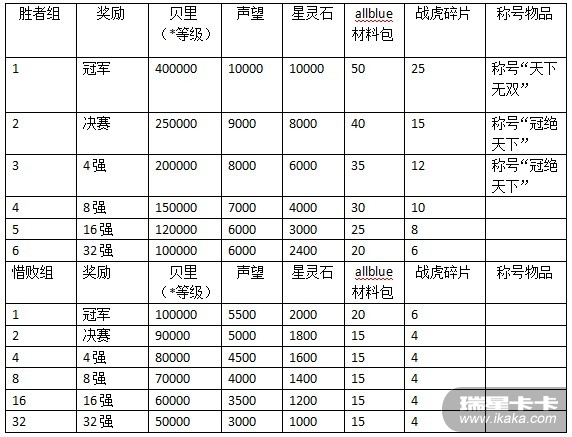 赛制同服内王者之战海选阶段,即报名的人决出新世界与伟大航路32强。