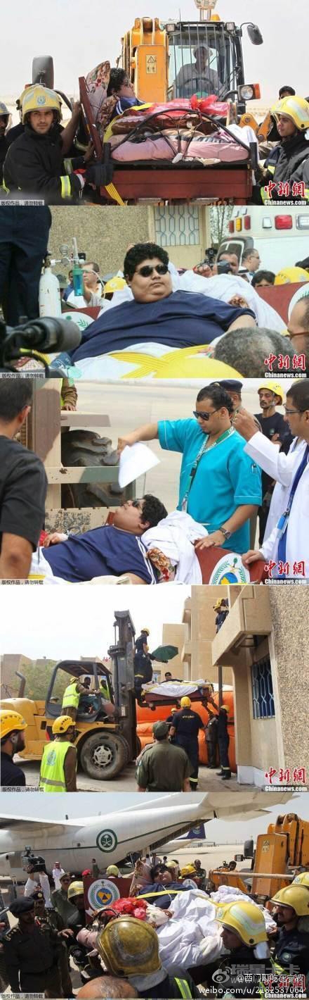 近日,沙特一体重达1220斤的男子被成功地从房间里“吊出”。因过度肥胖不能自主行动被困家中,消防人员拆掉他家楼房二层的卧室窗户,用起重机将他吊出,放到特制的床上,沙特空军出动飞机把他送到利雅得的医院做减肥治疗。