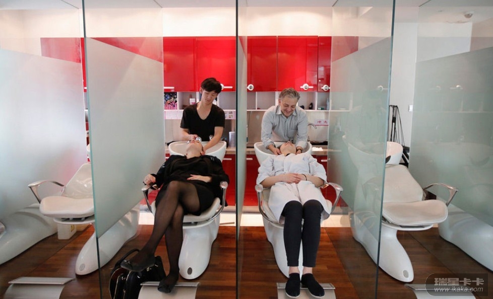 8月24日,北京,顾客在一家法国人开的高档美发店洗头。