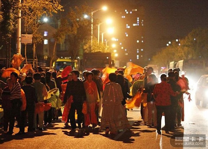 2013年09月11日,吉林省长春市,居民自发组成的秧歌队正在道路一侧扭秧歌,一辆货车从秧歌队旁驶过。对于交通安全,老人们都不太在意,他们说上百人在路上跳,目标很大,开车的人能躲着他们,不可能撞到他们的。