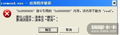 我的系统是XP SP1,今晚升级即将结束时,总是跳出ravmond.rxr应用程序错误,如图: