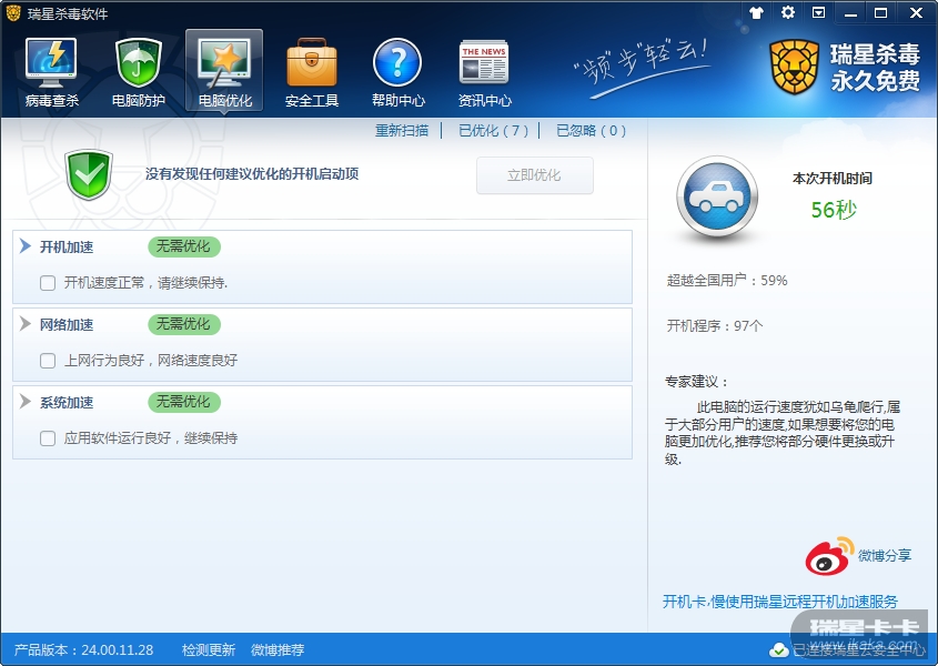 建议增加瑞星【电脑开机加速】服务链接如图