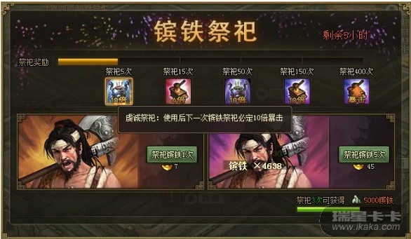 1. 每3次镔铁祭祀,可额外获得5000镔铁赠送;