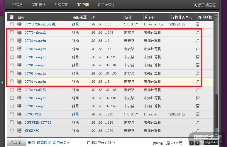 软件中的客户端扫描到的有问题,好多重名的,但是可以肯定重名的设备是其它的设备。重名的中有该机的虚拟机,有网络打印机等。