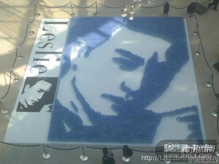 纪念哥哥:歌迷用纯净水摆张国荣巨幅画像
