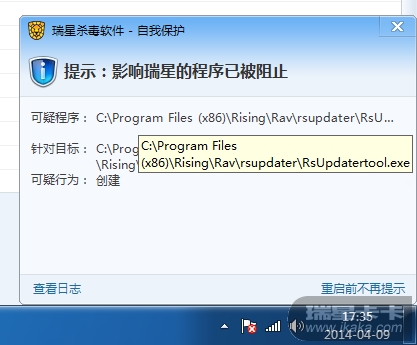 Win7 64位系统下瑞星不断提示自己阻止自己