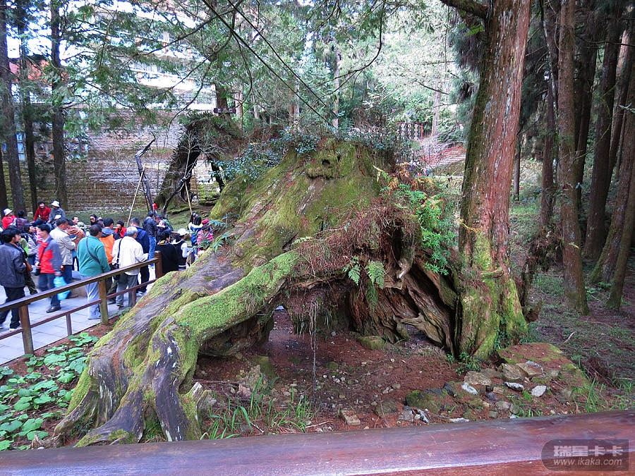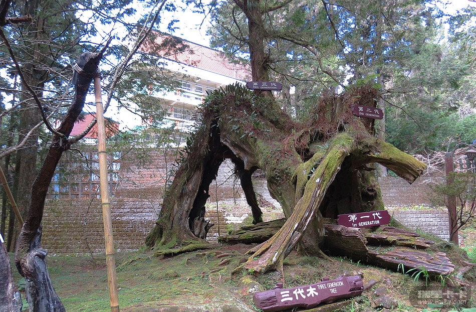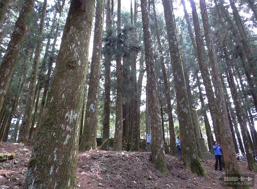 阿里山海拔2170米,并不算高,但对于东西海岸都为零海拔的台湾而言,却是“高耸入云”了。阿里山的主要景观是红桧树(又称圆柏,其木质粉红色,是建筑和家具用材),这里的许多红桧树都是千年以上的古树,蔚为壮观。听说阿里山的云海也挺有特色,但我们匆匆一过,根本看不到的。阿里山森林公园碑