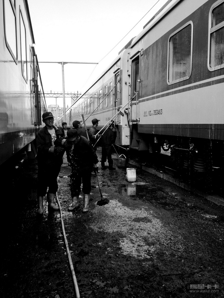 刷车工人很辛苦、口渴了就地对着喷水管喝水......